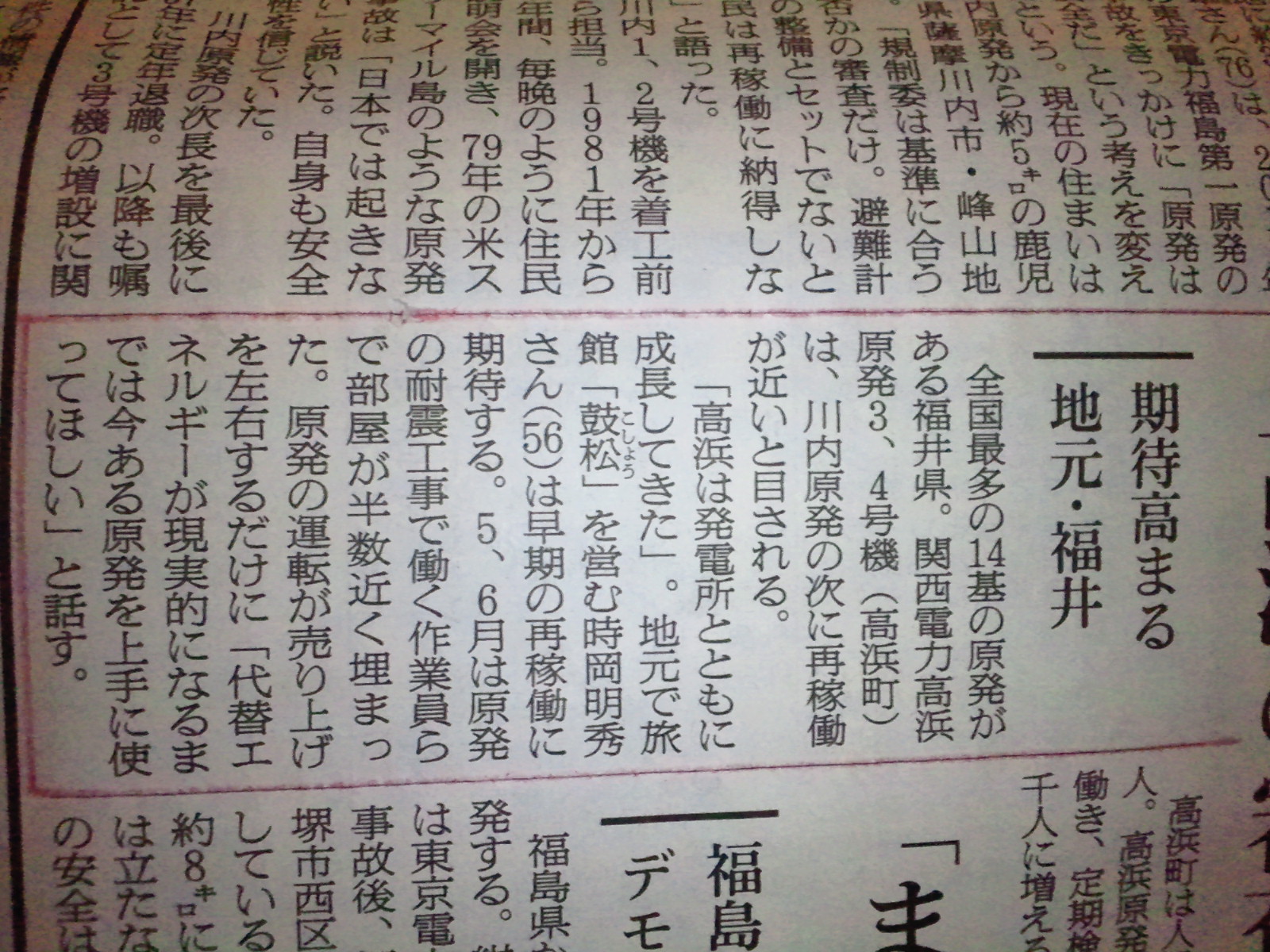 試験の前に 先だって17日(木)の朝日新聞から お父さんが取材を受けた