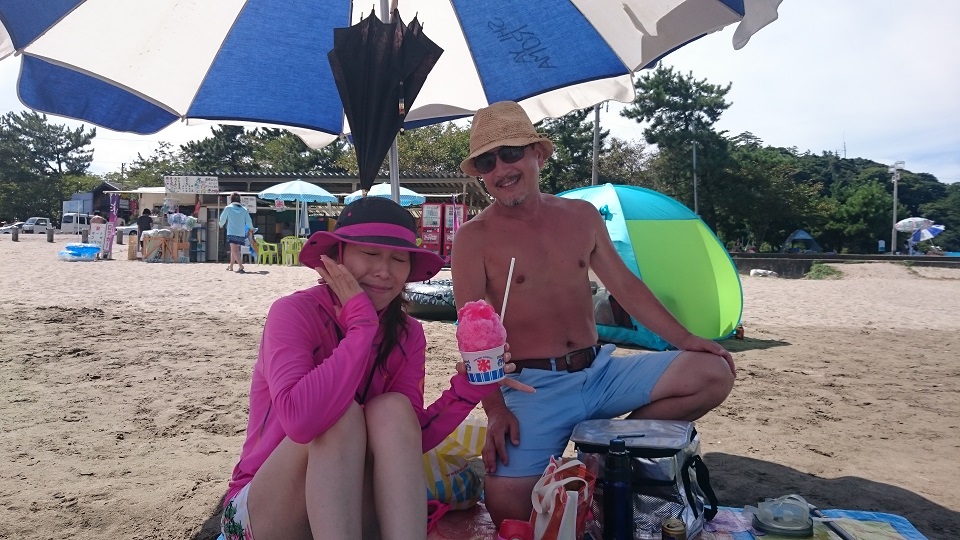 はじける若さ … 月(ルナ)と友達 … 城山海水浴場にて