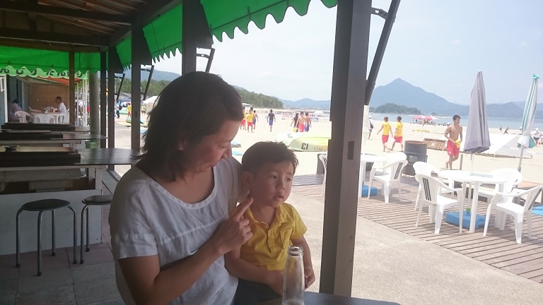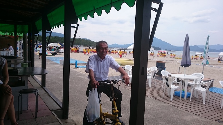 支配人、フライングぎみに 和田浜を満喫!?