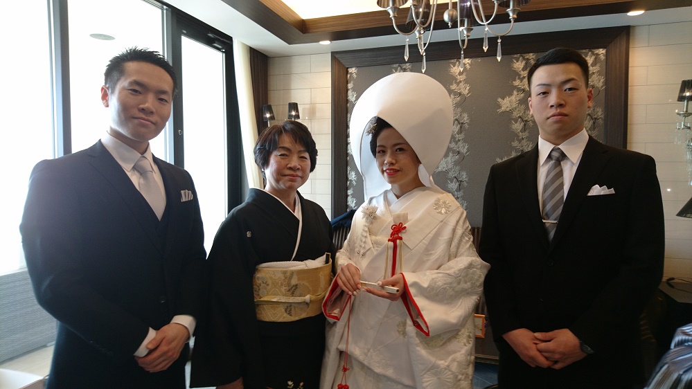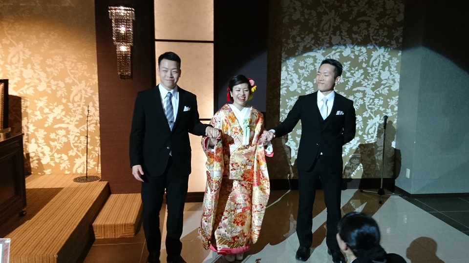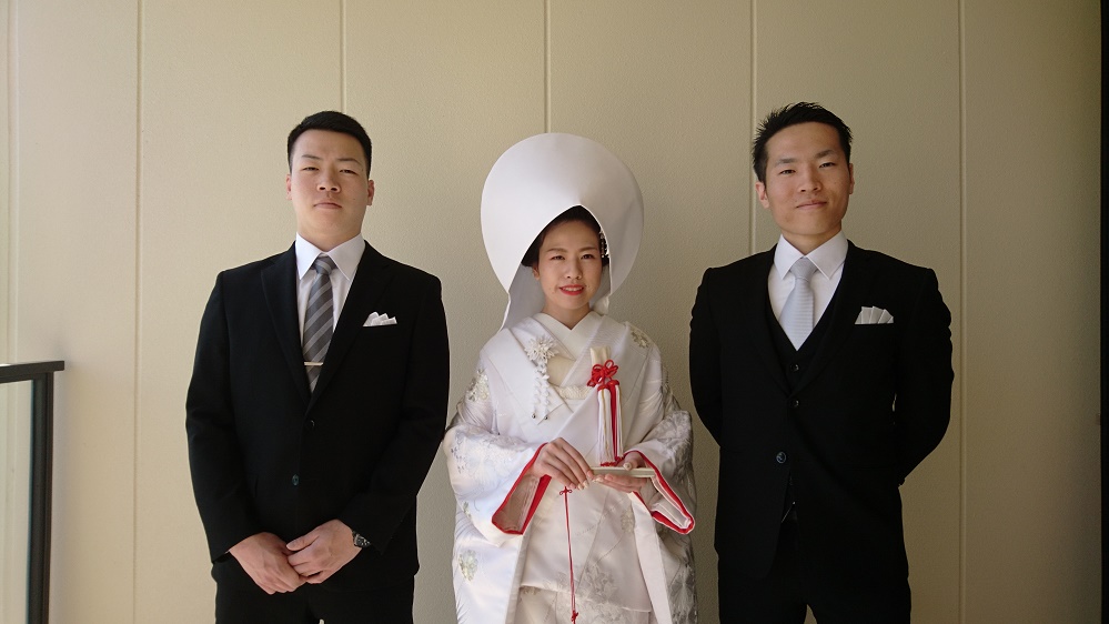 弟二人に 手を引かれる新婦