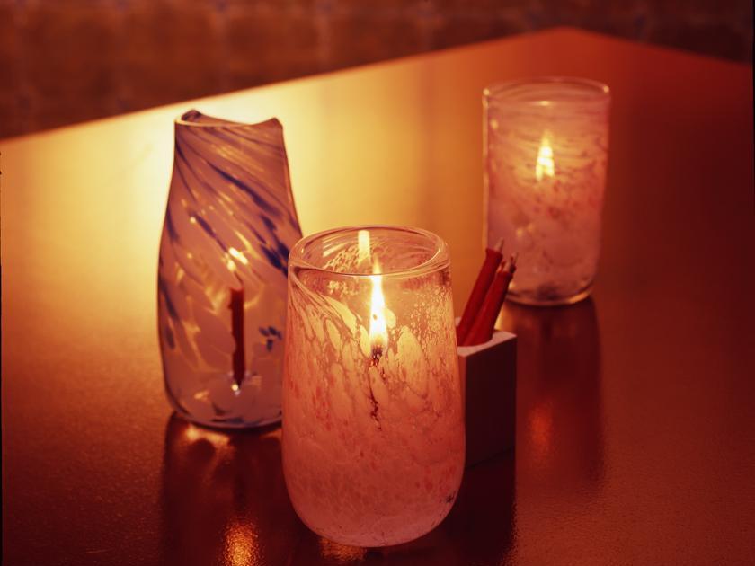 少しの間 電気を暗くして、赤いキャンドルの火を点し