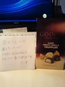 チョコ 投稿日:2013年2月19日 作成者: tokioka 昨日から今日にかけて、娘タミ子が 学校の友達二人連れて カニコースで 泊まりにきていました ・・・ 当館のスウィート 206号室を 指定して … さすが … タミちゃんの友達です! ヒューマンウオッチャーの私 支配人から見ても 賢そうで 性格も良さそうな イイお嬢さん達 でした。 まぁ~ そんなこんなで、お安く宿泊した お礼でしょうか … ? 写真のチョコを 置いて、神戸へ帰ってゆきました ・ ・ ・ とさ。